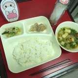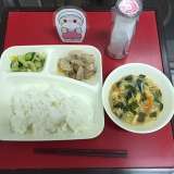 本日の献立は「鶏肉のからあげ・中華スープ・チンゲンサイともやしの甘酢あえ・ごはん...