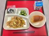 4月23日(金)の献立は、「黒糖パン(小)・牛乳・焼きそば・きゅうりのしょうが...