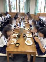 林間学習での最後の食事です。ホテルの方々に感謝して「いただきます!」