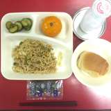 本日の献立は「焼きそば・きゅうりの辛みづけ・みかん(冷とう)・パン・牛乳」でした...