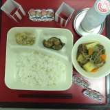 本日の献立は、月見の行事献立で「鶏肉とさといもの煮もの・豚肉とキャベツのしょうが...