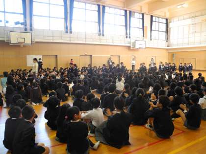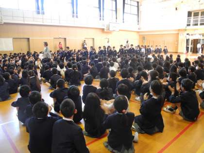 4月9日、新1年生との対面式を行いました。1年生はみんなの手拍子に迎えられて入場しました。