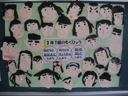 3年生の教室のうしろに、かわいい学級目標が掲示してありました。