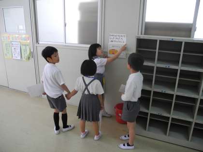 グループのリーダーは2年生。1年生に教室の場所をやさしく教えてあげていました。