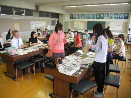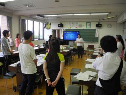 放課後、生野南小学校の後藤先生を講師としてお迎えし、教職員の音楽研修会を行いました。