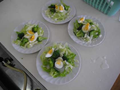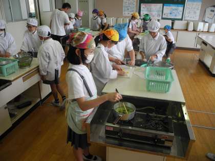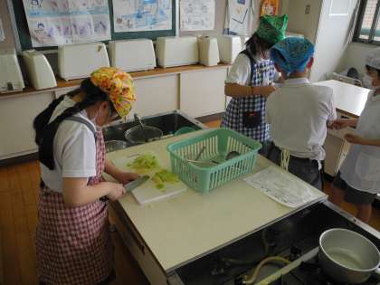 5・6時間目には5年1組が調理実習をしました。みんなで協力して野菜サラダを作りました。