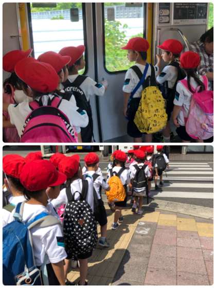 学校から鴻池新田駅まで歩いて、JRに乗って四条畷駅へ移動。静かに電車に乗って友だちと一緒に興味深々、景色を眺めていました。四条畷駅から公園へ歩いて移動しました。
