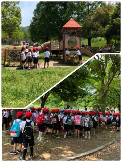 深北緑地内の遊具がたくさんある場所で遊びました。