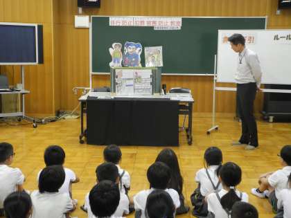 5時間目、中央少年サポートセンターのお二人を講師としてお招きし、5年生の「非行防止 犯罪被害防止教室」が行われました。ペープサートを用いてのお二人の熱演に子どもたちは引き込まれ、一生懸命聞いていました。