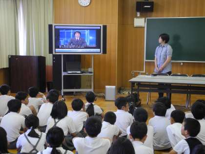 5時間目、6年生は鶴見警察署の方から、スマートフォンを使うときのモラルについて教えていただきました。最近あった「コンビニ」での悪ふざけの投稿や、ネットゲームでの高額な請求を例に分かりやすくお話を聞きました。