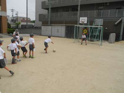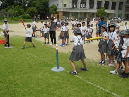 6月5日 今日からスポーツフェスティバルが始まりました。20分休みに運動委員会の人が用意してくれた「はしりはばとび」「ティーバッティング」「PK」「まとあて」の4種目に挑戦しました。今日は1〜3年生が楽しく参加しました。