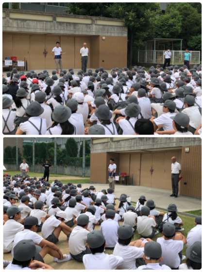 前回の地震の避難訓練に続いて、給食室からの火災を想定しての避難訓練をしました。