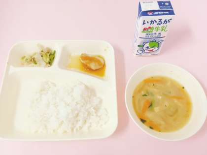 【ごはん、鶏肉のおろしじょうゆかけ、みそ汁、野菜いため、牛乳】