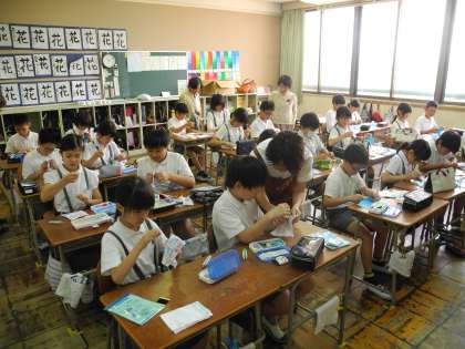 5年生は家庭科の時間に「生涯学習」の皆さんをゲストティーチャーとしてお迎えし、なみ縫いの学習をしました。出来ないときは、となりに来て教えてくださいました。