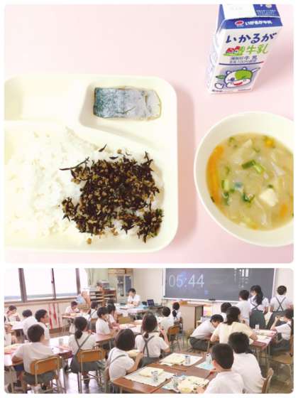 6月は食育月間なので、昼の放送でクイズ!を今日から、給食委員会の児童にお手伝いしてもらっています。初めての放送で、みんなドキドキしていましたが、上手に放送できていましたよ!