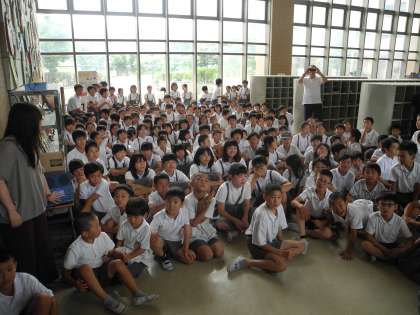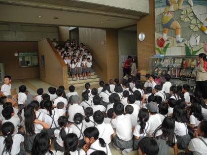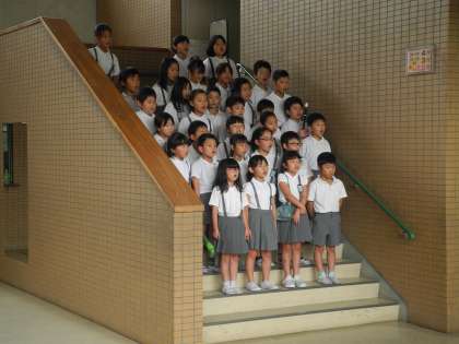 7月5日昼休み、玄関ホールでランチタイムコンサートをしました。3年1組の子どもたちが、きれいな歌声を聞かせてくれました。サプライズで先生たちのコーラスも披露されました。