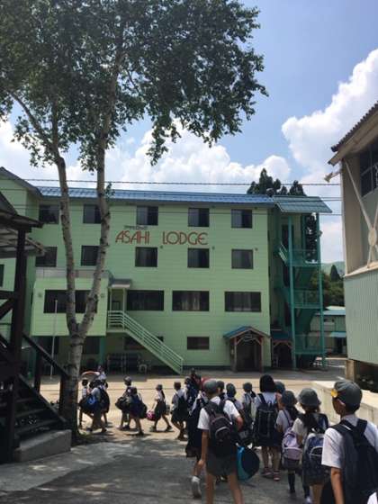 宿舎に入り、今から 避難訓練です。館の職員の方にも元気よくあいさつができました。