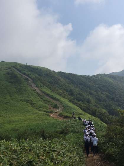 半分ぐらい登り終えたところで霧が晴れてきました!山の天気も味方してくれています。