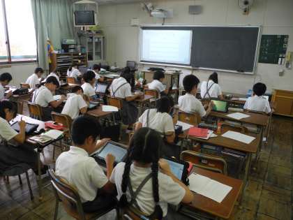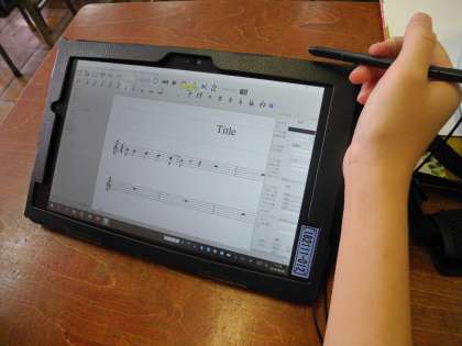 8月28日、5年1組は音楽の学習でタブレットを使って曲作りをしました。将来はヒットメーカーになるかも・・・?
