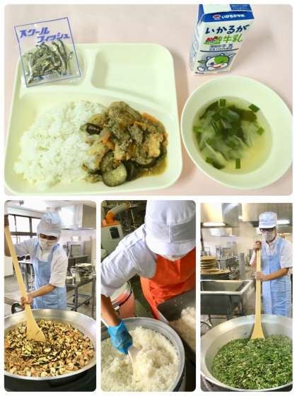 毎日、朝早くから、調理員さん達が美味しい給食をつくってくださっています。
