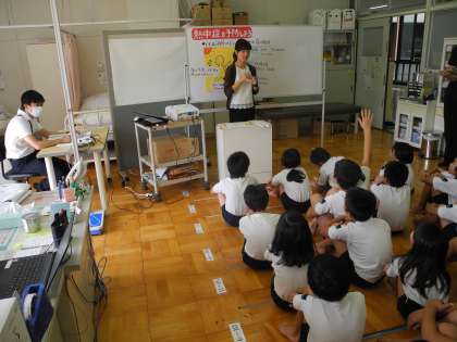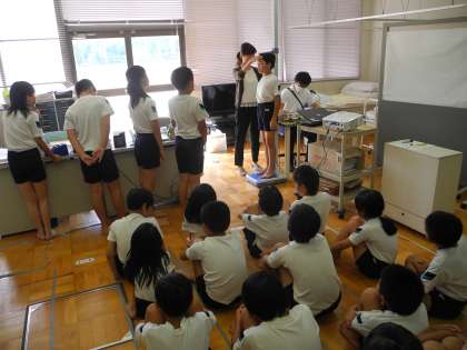 9月2日、4年生の発育測定を行いました。測定の前に保健室の先生から「熱中症の予防について」のお話を聞きました。