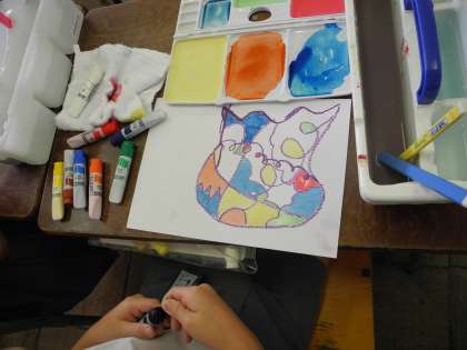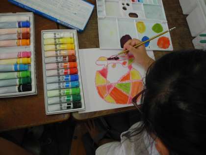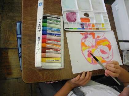 9月3日、3時間目。3年1組は図工の時間に絵の具を使って「すてきな花びん」を描いていました。出来上がりが楽しみです。