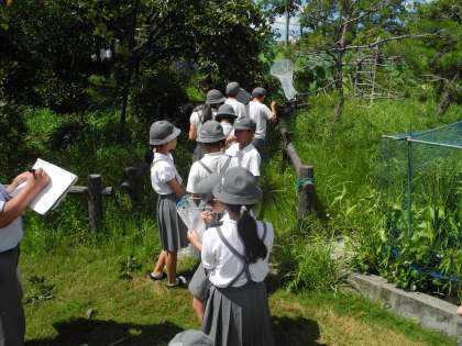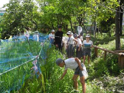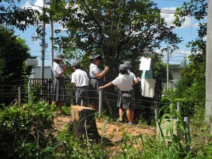 9月6日、4年生は大阪市環境局のみなさんをゲストティーチャーとしてお迎えし、学校の中の動植物について教えていただきました。茨田小学校の中には自然がいっぱい。たくさんの生き物を見つけました。