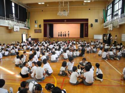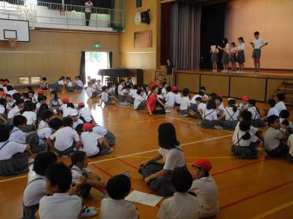 9月12日の児童集会は「先生当てクイズ」でした。「桜餅の好きな先生は」「学校で一番背の高い先生は」など、みんなで一生懸命考えていました。