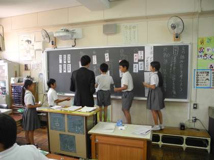 3時間目、教育実習で来ている室谷先生の授業がありました。国語科の「文の組み立てを考えよう」です。主語・述語・修飾語について考えました。