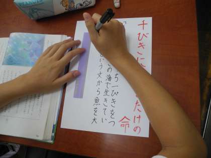 10月8日 2時間目、6年1組は国語科「海のいのち」を学習しました。テーマについて、一人一人がまとめて、発表していました。