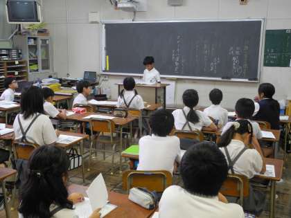 3時間目、5年1組も国語科。運動会のことを1分間スピーチにしてみんなの前で話しました。