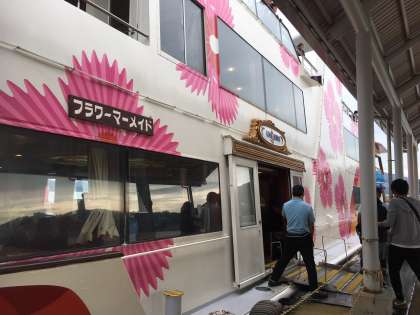フラワーマーメイドという名前の船に乗りました!内装はレトロでおしゃれ♪これから出発します!