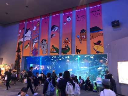 入り口を入ってすぐの巨大水槽は、ハロウィン仕様になっています!