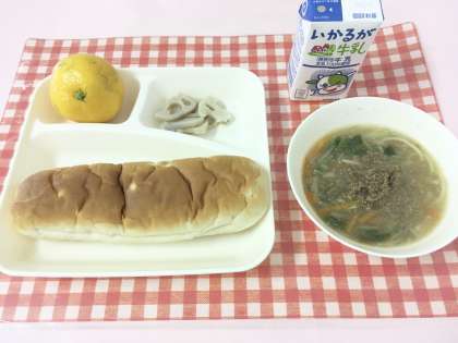 【タンタンめん、れんこんのオイスター焼き、みかん、牛乳】
