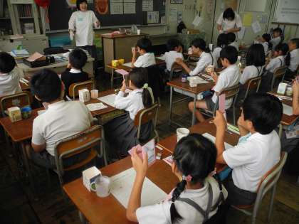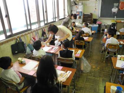 10月18日、歯科衛生士さんに来ていただき、2年生の「歯みがき指導」がありました。一人一人、ていねいに見ていただきました。