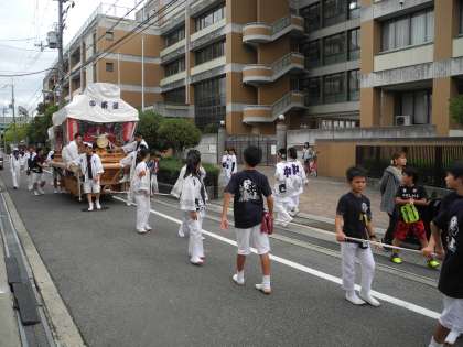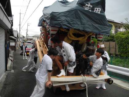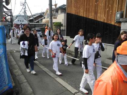 10月19・20日、中茶屋・安田の両地域で地車の曳行がありました。茨田小学校の子どもたちも参加していました。