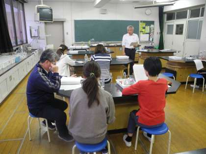 11月7日の放課後、教育センターの山野先生におこしいただき、理科の授業研修会を行いました。ポリエチレンの袋に水を入れて、とがった鉛筆で勢いよくさすと水が漏れない「はりねずみ」や、ペットボトルの水の中を魚の形の醤油差しが上下する「浮沈子」の実験などを教えていただきました。