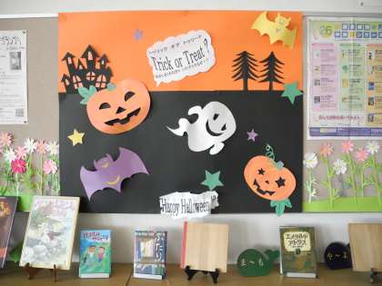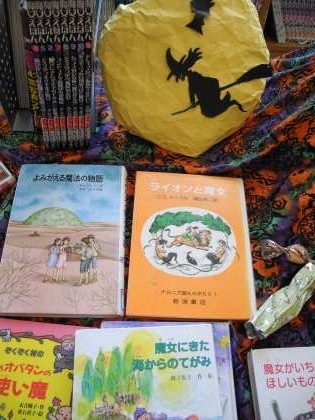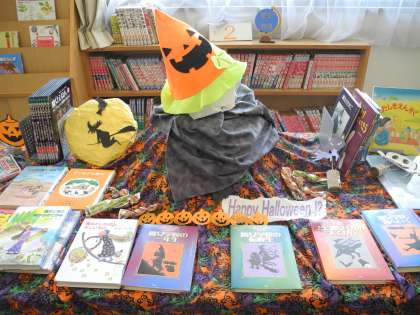 子どもたちの大好きなおばけや魔女の本が並べられています。