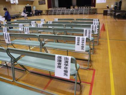 11月15日 6時間目と放課後に明日の学習(音楽)発表会の準備をしました。本日のお手紙でもお知らせしましたが、児童の出演学年の保護者の皆様の優先座席を設けています。学年の発表ごとに移動をお願いしますので、ご協力のほどよろしくお願いいたします。