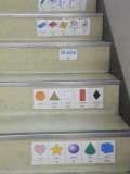 英語の簡単なあいさつや単語、都道府県の県庁所在地や各月の呼び方など階段を上るたびに目に飛び込んできて、楽しく学べます。