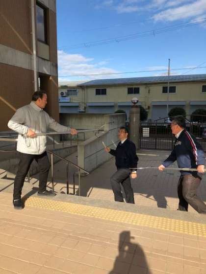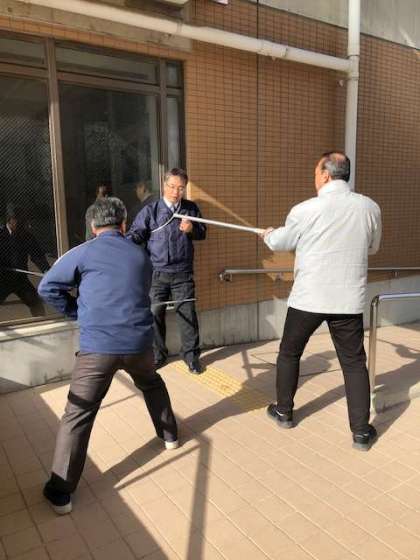 鶴見警察署の防犯係のお巡りさんと訓練をしました。