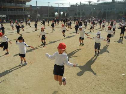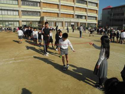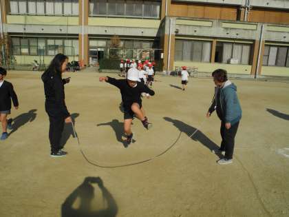今週は「なわとび週間」です。20分休みに運動場に出て、さまざまな跳び方に挑戦します。後半は学級ごとに「長なわ」を跳びます。なんと3年2組は連続100回をこえました!