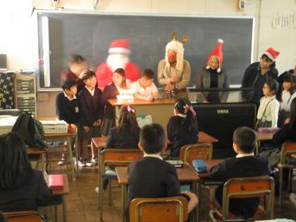 サンタクロースを中心に「赤鼻のトナカイ」の歌のプレゼントもありました。