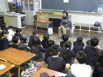 2・3時間目、鶴見おはなしの会「でんでんむし」のみなさんに来ていただき、おはなし会をしました。ろうそくの明かりをともして、学年に応じたお話を聞かせていただきました。