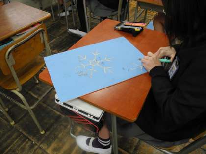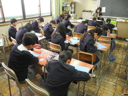 1月24日 1時間目、6年生は1・2組とも図工科で版画を彫っていました。出来上がりが楽しみです。