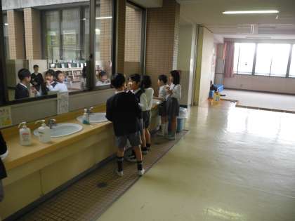 給食終わりには近くの水道に行き、みんな歯みがきをがんばっています。