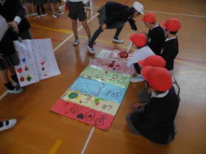 2年生が作った「おもちゃ」で1年生が遊びます。