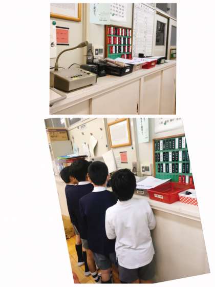 「失礼します!」職員室に入り、職員室のマイクを使って、原稿を交替ずつ読みます。ドキドキ、緊張していましたが、どのクラスも大変、上手に放送出来ました!!拍手!!