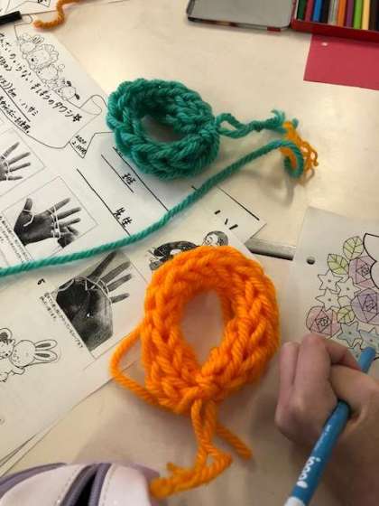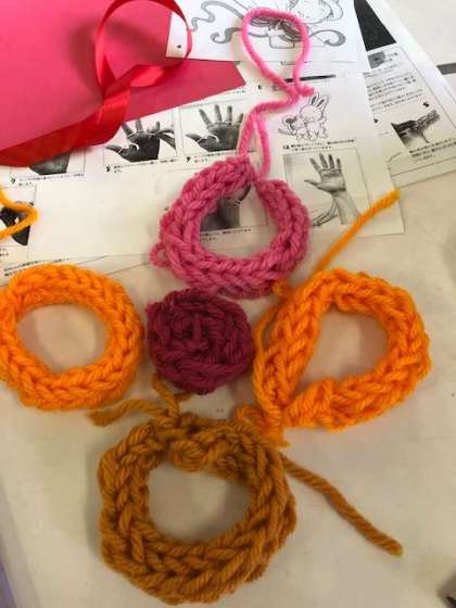 今年度最終のクラブ活動でした。家庭科クラブは地域の方に教えていただいて、指編みをしました。アクリル毛糸を使って、洗剤のいらないたわしを上手に作りました。