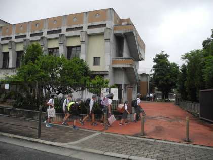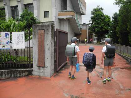 5月19日(火)初めて1年生と一緒に集団登下校をしました。班の中で1年生に声をかけたり、手を引いたりする姿が見られました。下校時は天気の関係で大屋根の下で班になって集団下校をしました。